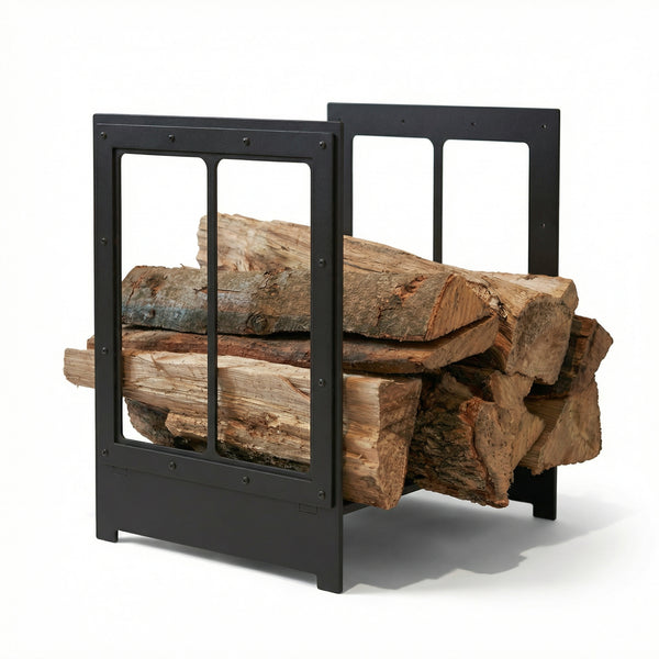 Design Specialties Log Holder Black Rock– 3/16” Laser-Cut Steel Firewood Rack – 21 Custom Finish Options – Made in USA